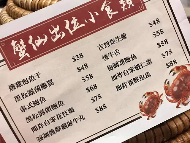 菲律賓黃奄蟹,實實的嫩肉極甜,蟹味特濃,漏晒蟹汁,鮮味激突。蟹膏勁咸,連汁食頂不緊。蘇格蘭蟶子皇,蒸到過火過熟,刷膠一樣韌韌,味道完全流失。貴妃蚌,瘦猛猛發出濃烈腥味,十分多泥沒洗得徹底,吐掉放棄。刀貝,肥美乾淨,鮮鮮甜甜彈彈。深海野生龍躉片,非常淡口,鞋鞋的沾上辣椒豉油唔難食。