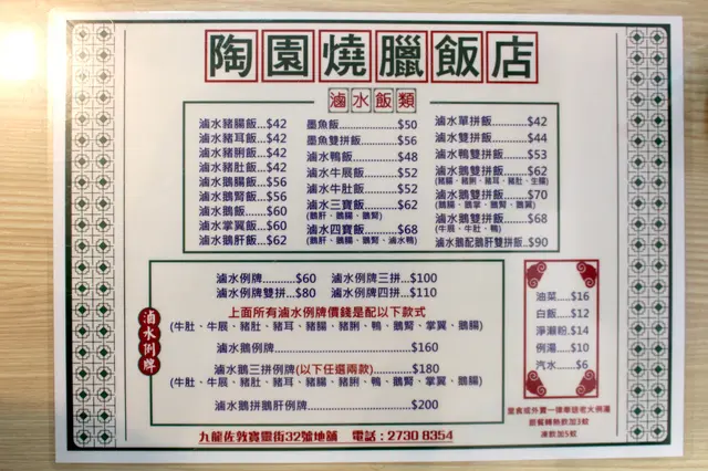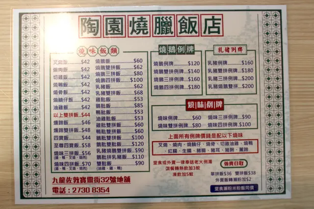 薪火相傳老字號燒味|荔枝柴燒鵝 VoraciousLevel 42022-03-15122 views Follow 外賣燒臘向來都是加餸首選,陶園燒臘飯店開業超過半個世紀,曾經面臨結業但幸得熟客接手繼續經營。透過玻璃可見掛滿各式各樣燒味及滷味,富有光澤狀甚吸引。除了外賣之外當然亦可以選擇堂食,整體價格與坊間相若,而外賣飯盒或下午茶餐如燒鴨米粉或叉燒拉麵連飲品均不用四十元,更加划算。1燒鵝$100燒鵝 ($100) 標榜以荔枝柴燒製,鵝皮香脆並富油香,而鵝肉肉質結實細緻,肉味香濃且愈嚼愈香。叉燒$128叉燒 ($128/斤) 偏肥口感豐腴正合我意,鹹度適中並帶蜜汁甜味,色澤自然感覺上並無添加過多色素。The above review is the personal opinion of a user which does not represent OpenRice's point of view.1Share薪火相傳老字號燒味|荔枝柴燒鵝 陶園燒臘飯店 https://s.openrice.com/QrKT0b3b200Report Post Ratings4Taste3Decor4Service3Hygiene3ValueRecommended Dishes燒鵝$100Dining MethodDine In