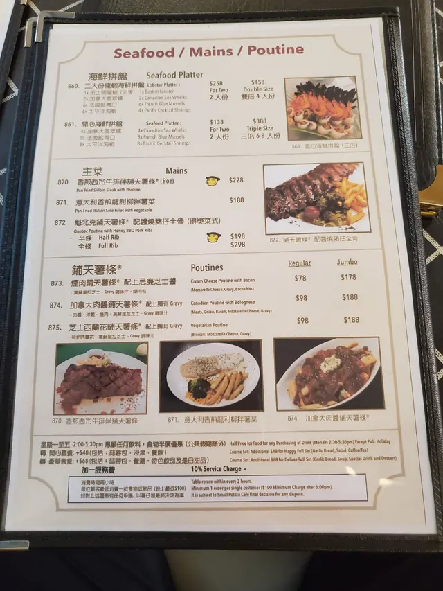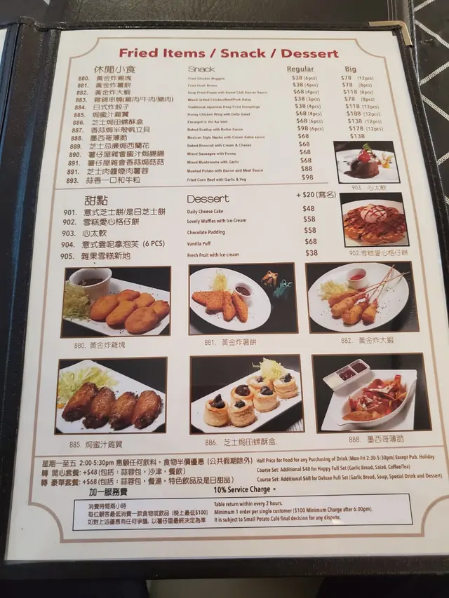 最終都係一嚐招牌餐鋪天薯條配醬燒豬仔骨半條$198,和芝士焗田螺酥盒$68