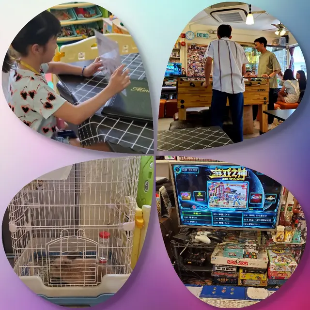 地方細細,老闆好有心思設計,可以分三個區域,兒童天地有玩具和小動物,年青人有電動遊戲機,大人睇下電視和梳化嘆下傾下