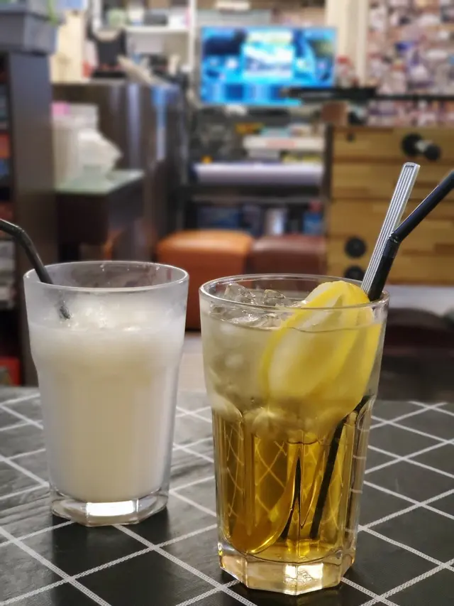 最後叫埋兩杯凍飲杏霜和檸檬綠茶潤下喉