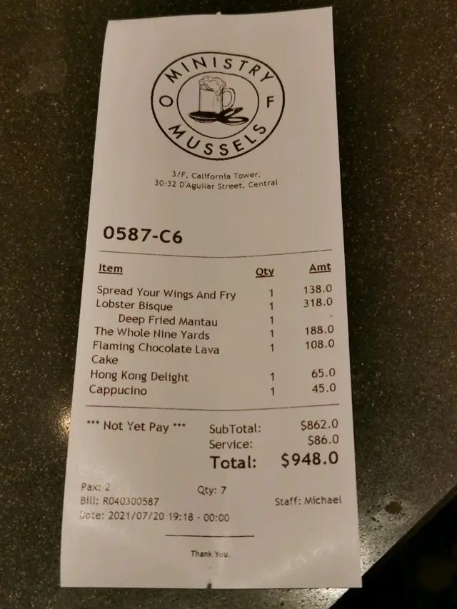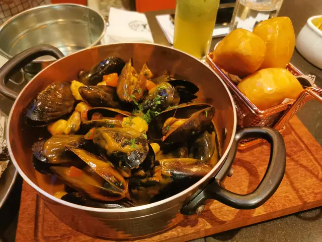 呢間餐廳最出名就係食青口, 我哋點咗龍蝦湯味, 好特別隔離有四個炸饅頭