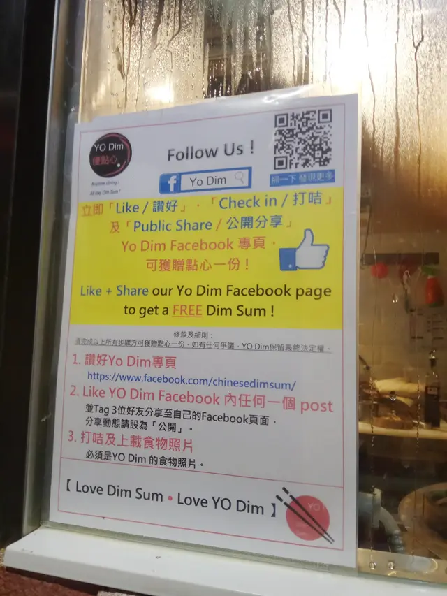 點心是即叫即蒸,所以食客都需要多一點耐性。等點心期間發現廚房外貼了一張紙,寫著只要Like、打卡和分享點心店Facebook專頁並Tag三位好友,才會獲贈點心一份,由於怕麻煩所以我都是算了。