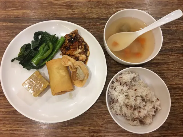 Plant-based diet is becoming more common and it’s happy to find vegetarian restaurants in universities. Apart from taking care of vegetarian students and teaching staff, vegetarian restaurants also provide healthy and environment-friendly options to non-vegetarians. Bijas Vegetarian Restaurant charges by weight - we can choose what to eat and decide how much to have. After taking what we need, we can put the dish on the electronic scale to check the weight. There are vegetables, tofu, fried dim sum and Chinese desserts on the buffet table. While they charge $16 per 100g, the portion in the photo cost around $30. Unlimited amount of rice and soup are provided so that everyone can get take the amount they need. Please remember to return the utensils after your meal to reduce the workload of staff.