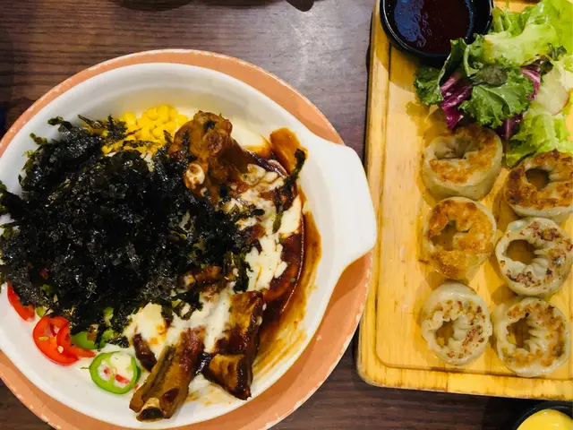 我哋仲叫咗韓式煎餃子$60,一共有六粒,全部都係一口size,伴碟有蔬菜,食完一啲都唔膩,夠香口🥰🥰🥰