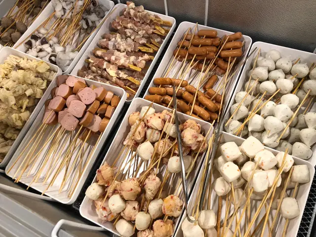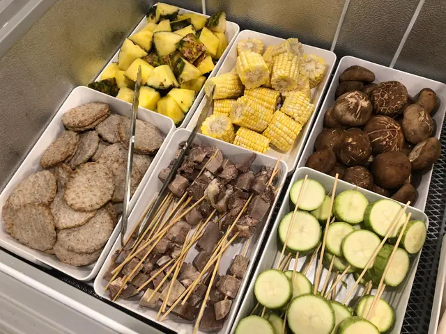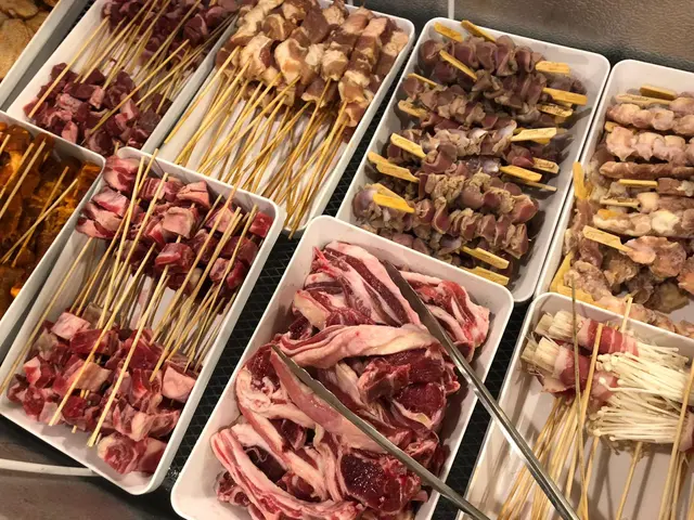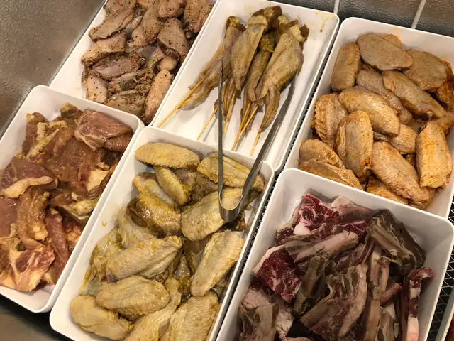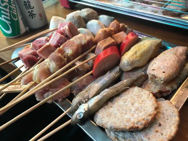 肉類也相當豐富,以串燒的方式提供,有牛肉、羊肉、雞翼、雞軟骨和雞腎,並有多種調味料提供如粗鹽、蒜蓉、辣椒,自己親手燒烤的串燒,份外有種成功感和美味,食得又玩得。