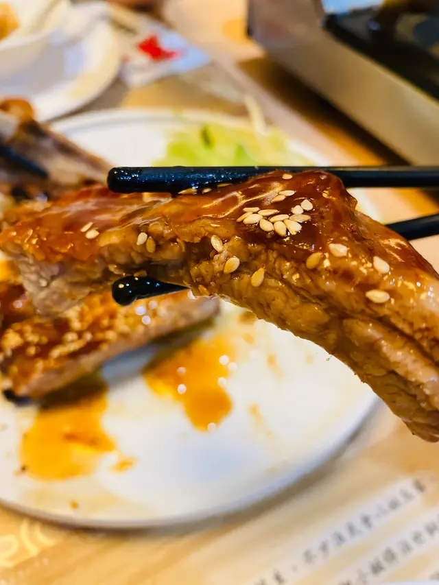 賣相似西餐果啲ribs ,佢用黑毛豬,啲肉一啲都唔硬,佢最犀利係望落一啲都唔濃,但可以外脆內軟,而且仲有好多肉汁,食到骨頭位好香肉味,超級好食,控制得個火喉好好,仲係即叫即整,好彩一落枱就嗌,因為都要等7個字燒。