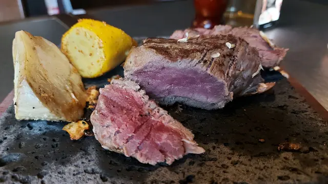 石燒牛肉到一樣非常大份,厚厚既牛柳放於熱石上,自己控制幾成熟,啖啖都好味😊,牛扒嘅配菜有翠玉瓜青瓜黃瓜同雞髀菇,我同朋友都清哂,非常juicy👍🏻