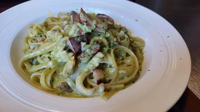 扁意粉既海鮮非常足料,亦非常大碟,就算係男士都非常夠食,個醬汁係香草類青醬,只係$68,性價比極高👍🏻👍🏻