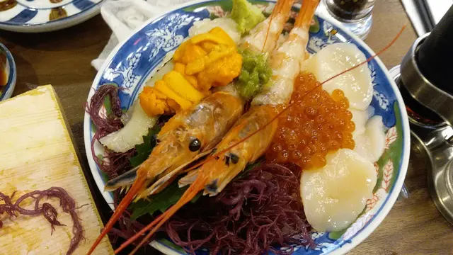 , 看餐牌後, 想叫的食物,有好幾樣也沒有,最後叫了一個北海豐盛井、燒牛肉蕃茄烏冬 ,加了兩個小食,一個是芝士魚餅,另一個是帶子, 北海豐盛井來到, 三文魚子很淡、冇味、唔夠新鮮,海膽很腥