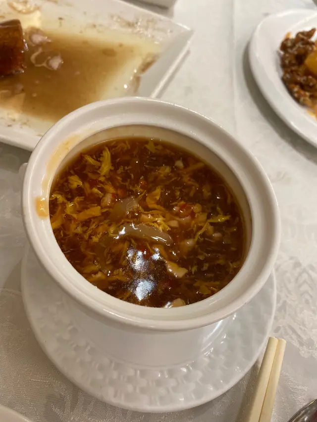 行完山食中菜 veveveyyLevel 32022-09-21531 views Follow 呢日行完山已經好攰,來到觀塘就揾間中菜坐得舒服食晚飯。例牌燒鵝,呢隻燒鵝偏肥,油香十足,不過食多兩件會較膩口,飲淡茶清清口食下一個菜。同燒鵝係同一個set咁叫,4個人都夠,不過略嫌煮過龍左少少。甜桃千島蝦球有驚喜,蝦球好大隻,好脆身,千島汁炒埋一齊好夾,芝麻甜合桃甜甜地好好味。金銀蛋莧菜正常,夠大碟,皮蛋咸蛋食極都仲有,足料。海深蟹肉酸辣湯,料頭都夠,略嫌豆瓣醬濃左少少較霸口,變左酸味無咁重,但喜好重口味的朋友應該ok。鴻星好耐以前食過茶點心都ok,呢次晚餐好在都無令我失望。The above review is the personal opinion of a user which does not represent OpenRice's point of view.LikeShare行完山食中菜 鴻星中菜 (源成中心) https://s.openrice.com/QrKT0Drn500Report Post Ratings4Taste4Decor4Service4Hygiene2ValueDate of Visit2022-09-18Dining MethodDine InSpending Per Head$250 (Dinner)