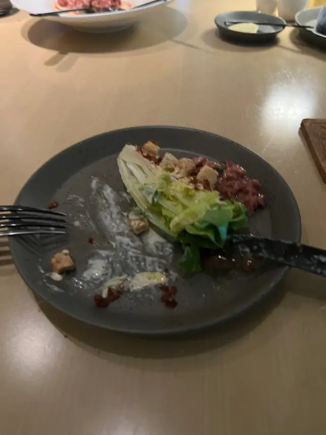 前菜係一個變奏版嘅凱撒沙律,d生菜原棵上