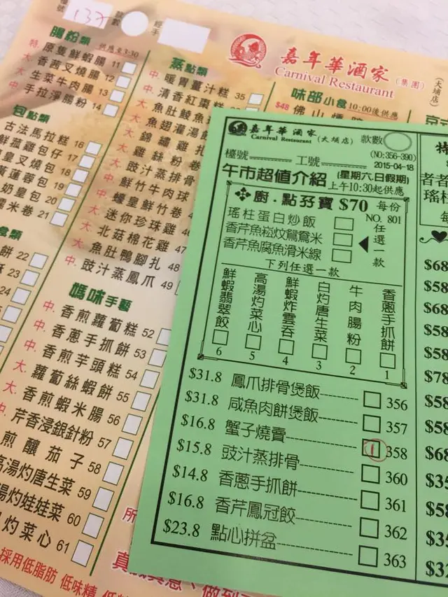 爸媽係都要黎依間酒樓,不停話抵食,點心難食,而且環境迫夾殘舊,衛生一般,位置隔躡行到我傻,平又如何啫。燒腩仔,除了皮脆外,咸到癲,油到傻!叉燒切雞,不是白切雞嗎?勁咸雞肉,全部雞胸皮薄肉鞋。咸咸肥叉燒,肥都乾鞋硬,劣質。