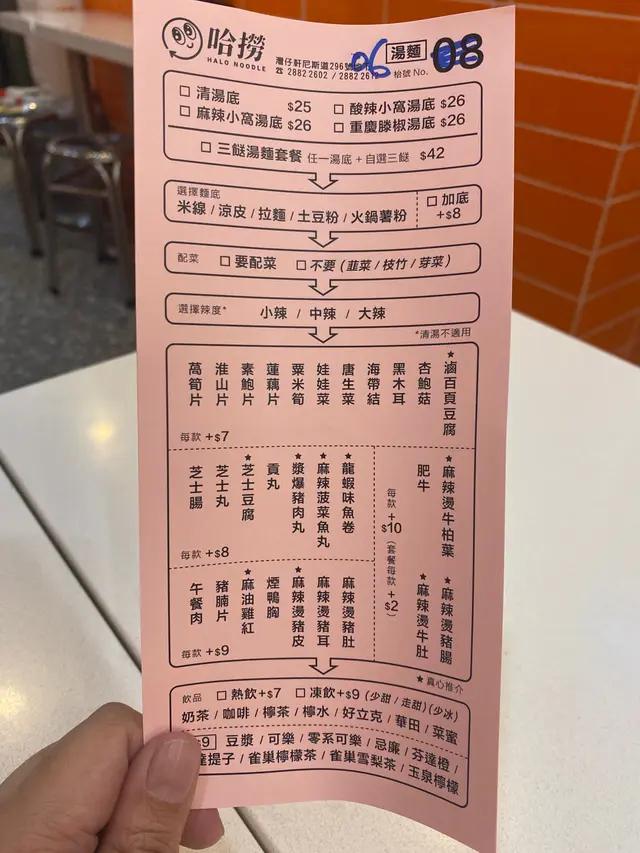 如果唔鍾意食凍食嘅話,呢度都有熱湯嘅。湯底都好大眾化,有清湯酸辣麻辣。再望望一望有土豆粉嘅?薯粉,我就聽得多。土豆粉就少見,唔知道係點嘅呢?
