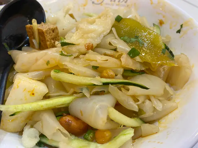 呢間餐廳就主打「涼皮」、「冷麵」。價錢睇落都幾平民,$42可以揀三個餸及一款涼皮或者麵。再望網落去睇下啲餸,有啲都幾特別,平時喺出面食嘅時候唔會見到有。例如芝麻八爪魚、中華沙律、麻辣柚子墨魚。