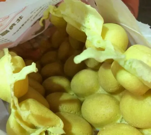 今日下晏同同事過尖沙咀做野,準備走果時,離遠聞到好香,望吓前面好多人排隊,行埋去睇原來喺利強記雞蛋仔,難怪咁香喇。門口放住大鍋魚蛋,啊姐唔停甘整緊雞蛋仔。又胃食喇,排隊。同事擔心唔乾淨,街頭小食咁嘅環境算乾淨喇。