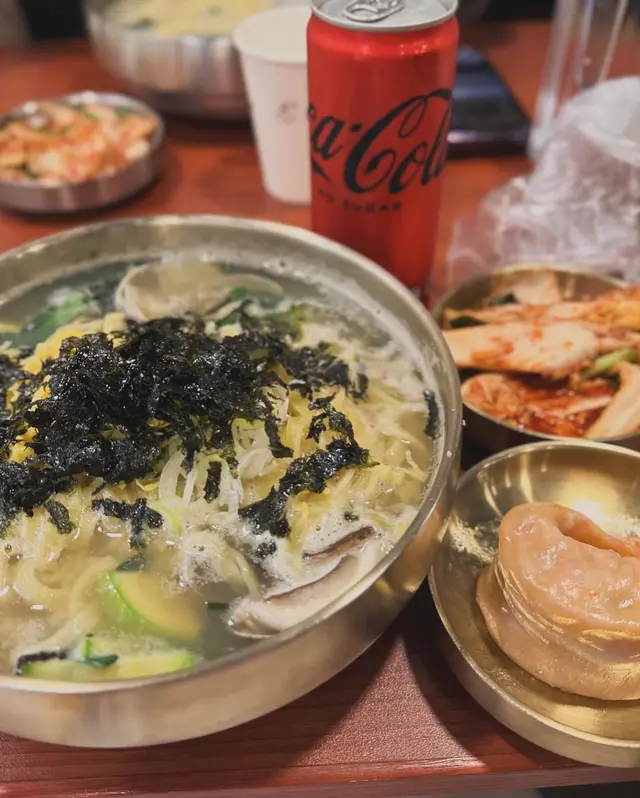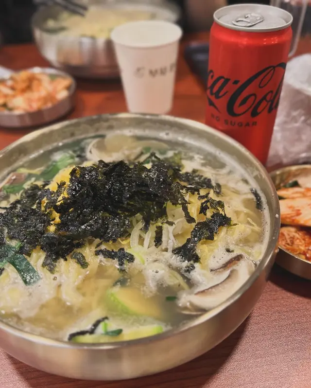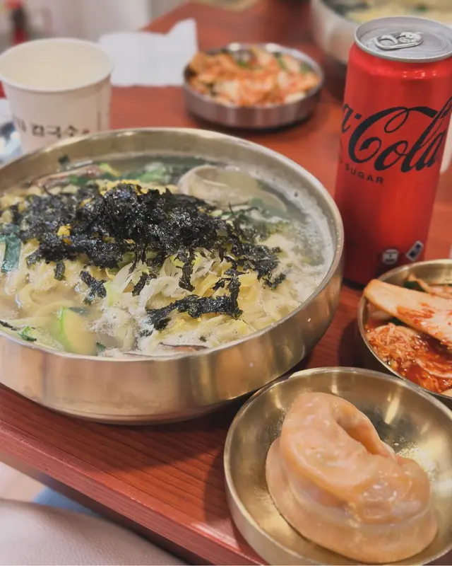 衝著韓國手工麵特色去試,雖然選擇未算很多,但選擇困難的我也花了不少時間選擇,因為正好是可選午市套餐的時間,餐廳包括麵食、一件蒸餃子及飲品,為了一嘗餃子,選了套餐,麵食就點了花蛤刀削麵。