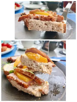 酸種麵包外脆內Q軟煙韌🥖配料鋪到滿😍鴨胸軟嫩甘鮮冇騷味🦆酸甜多汁香橙🍊再配埋酸忌廉 好開胃🤍薯條轉左沙律 黑醋羽衣甘藍 爽脆清新🥗