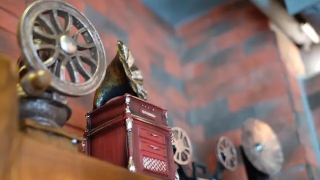 除了燈飾,店內還用上不少紅色和橙色的懷舊擺設。一排紅色電話亭、滅火器擺設被放在射燈下,牆上放著模仿黑膠唱片。另一角落罷放了留聲機擺設,古典味濃厚,莫非店名Studio 的含意是錄音室的意思?