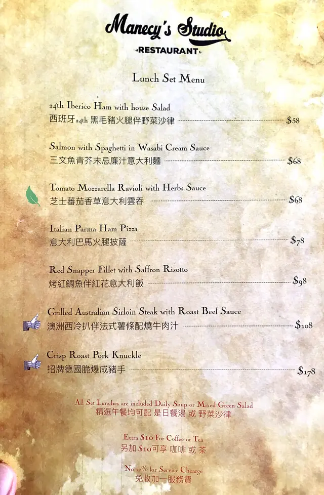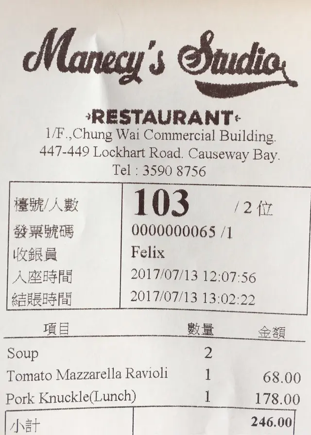 我們二人吃了約四五件豬手,便宣布戰敗回府。時間關係,我並沒有加配餐茶咖啡,否則這定是一頓120%滿足的午餐。等待結賬途中,我回想到對於仍不能讀出MANECY的英文,深感羞愧。於是我指尖在手機輕掃,搜尋MANECY是什麼一個概念。我在維基百科找到一位叫筱靖的女士,英文名字叫MANECY。我再看到她是這間餐廳的董事,就確認她就是這家餐廳的創辦人。原來1985年出生的筱靖參加了亞洲小姐競選,進入12強,後來加入亞視。其後亞視欠薪,她在報導中講出一句[出糧是天經地義],就被雪藏和解約。世事難言對錯,如果當初MANECY勉強埋沒自己良心,取悅公司,結果也避不了時間巨輪下亞視清盤的歷史。我不認識這位筱靖小姐,但從網上已感受到她的剛直率直性格。從餐廳對豬手即叫即製,不經油炸的處理,希望是筱靖小姐對食物有著同一份堅持。