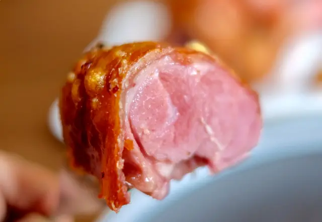 主角豬手即叫即烤,我們等了約20分鐘,一隻已起肉的焗豬手終於送上。豬手焗至金黃色,廚師沿著骨頭起肉,共有七至八件。伴碟有三片烤香的香草麵包、傳統德國酸菜和伴碟沙律菜。對於剛喝過湯吃過意大利雲吞的我而言,確實瞬間令我擔憂五臟廟處理不下。