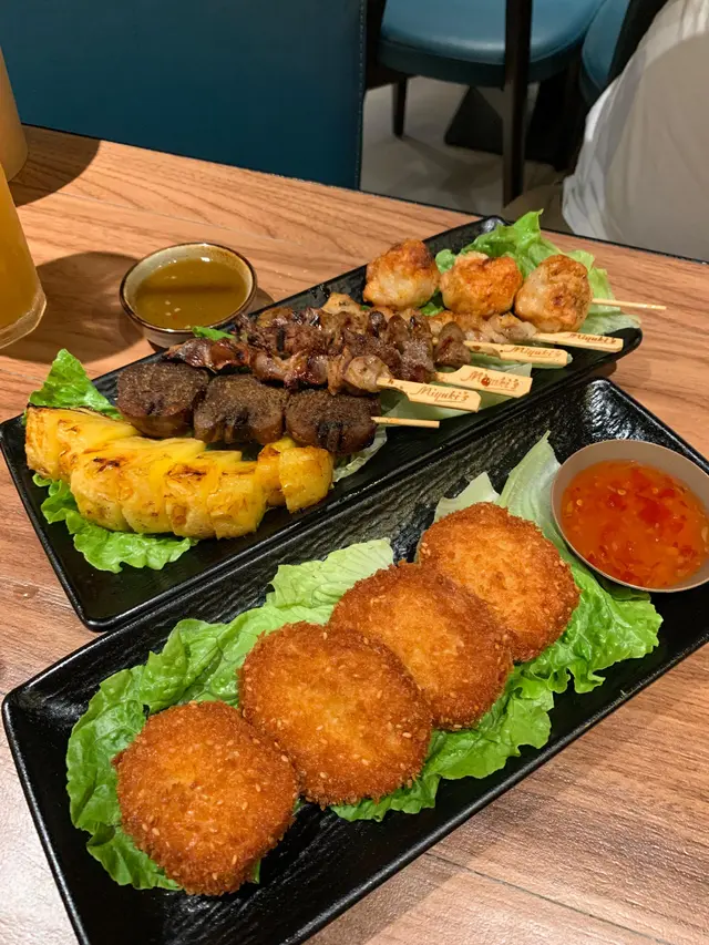 雞雜系列個個都係精品,雞肝外脆內嫩,一啖咬落仲有汁水噴出嚟,香口得嚟又唔會有腥味。雞心同雞腎都係入味十足,個醬汁香濃惹味,食落有啲微辣,超開胃!雞軟骨就爽彈有嚼勁,食落好過癮。至於泰式炸蝦餅,香脆得嚟又有蝦嘅鮮甜