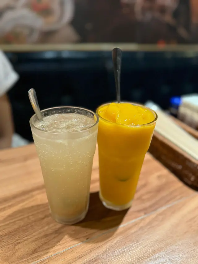 愛文芒果沙冰真係夏日必飲!芒果香甜新鮮,啲冰沙綿密順滑,食完串燒後飲呢杯真係消暑解膩一流。🥭 而咸檸七就充滿港式特色,酸酸甜甜,加咗啲鹹檸檬更添風味,配串燒就啱啱好,開胃又解膩!