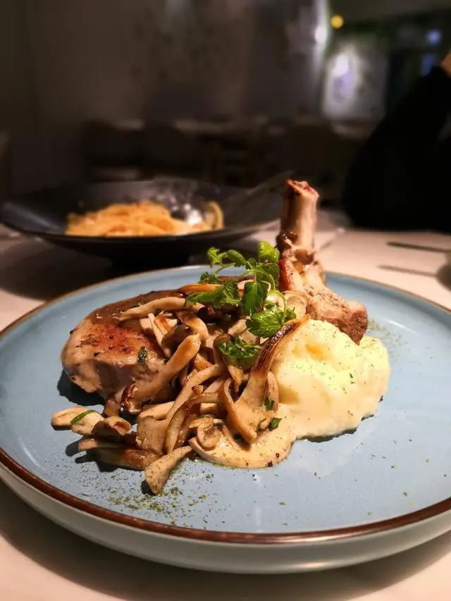 香烤加拿大豬鞍扒配黑松露菌燒汁, 賣相好吸引, 豬鞍扒嘅熟透度啱啱好, 肉質非常之嫩滑, 一啲鞋口個感覺都冇, 配埋黑松露嘅汁一齊食, 滋味無窮