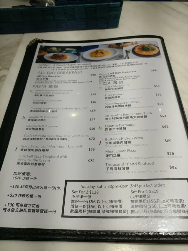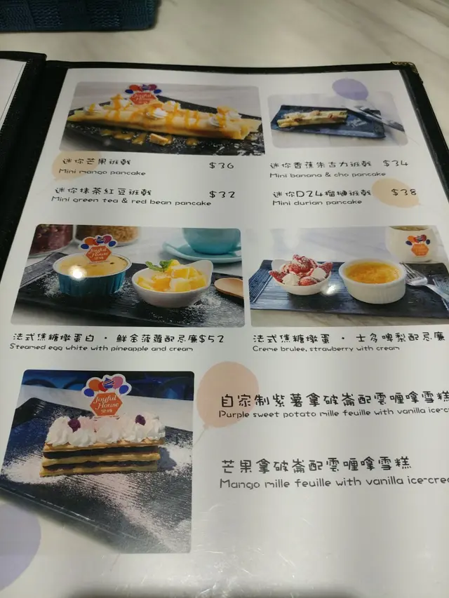 甜品餐牌還有晚餐添