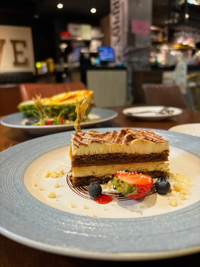 Tiramisu永遠都係穩陣嘅選擇。呢度嘅Tiramisu做得唔錯,Mascarpone cheese夠輕盈幼滑,手指餅浸泡咖啡酒嘅濕潤度啱啱好,唔會太濕爛。咖啡同酒嘅香味平衡得好好,面頭嘅可可粉帶點微苦,成個甜品食落唔會死甜,好有層次感。😋