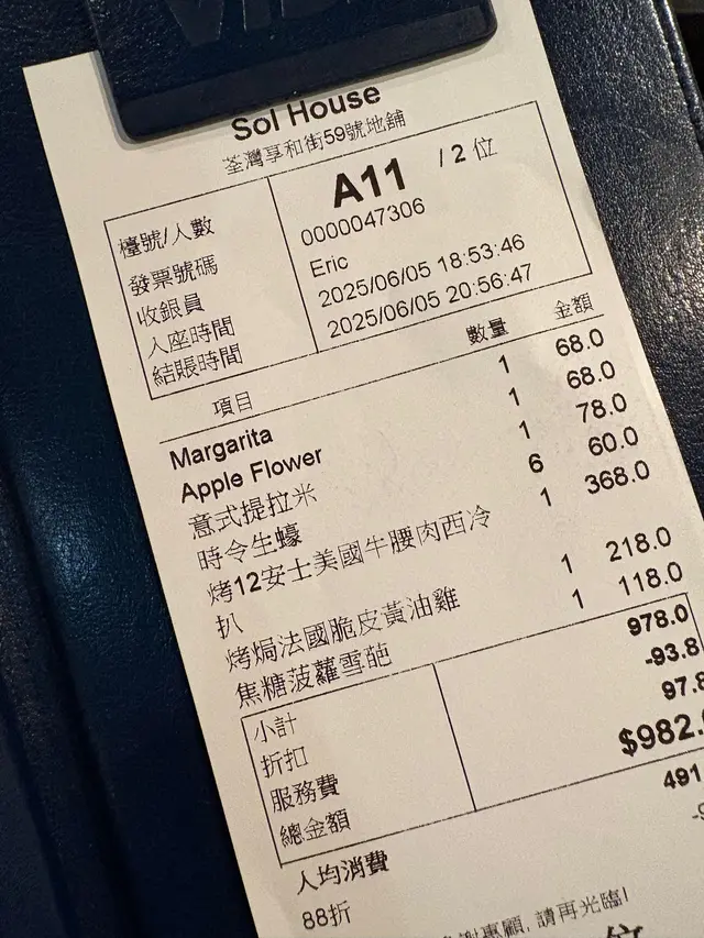 星期六晚,終於可以同男朋友仔撐枱腳👫,我哋揀咗荃灣海邊呢間Sol House,諗住一路食好西,一路傾吓聖誕節去邊度玩嘅大計🎄🗺️。餐廳入面比想像中闊落,枱與枱之間有足夠距離,唔會好迫。燈光係柔和嘅黃燈,播住啲輕快嘅音樂,成個感覺好寫意,坐低就唔想走,完全係一個可以慢慢食、慢慢傾偈嘅地方。我哋被安排坐喺窗邊位,雖然夜晚睇唔到咩海景,但望住外面嘅街景都幾唔錯,可以好放鬆咁享受二人世界✨。