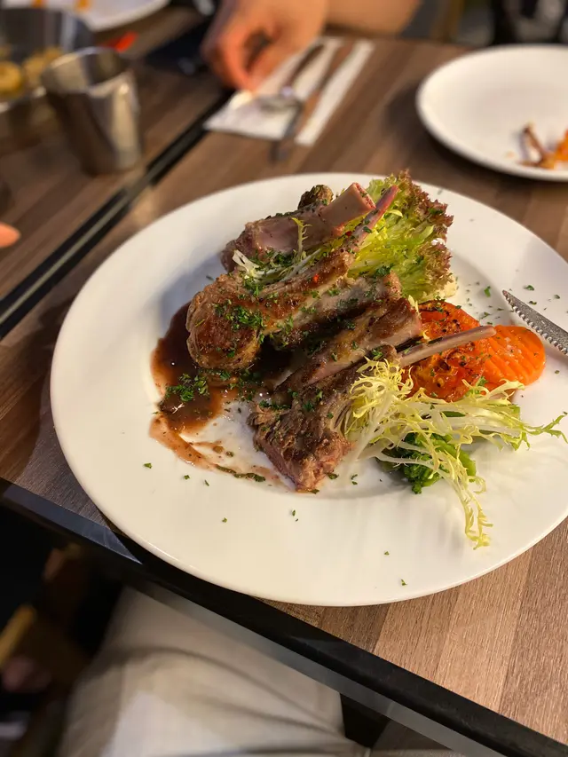 今晚約咗人一班朋友聚舊。嚟到深水埗一間西式cafe。環境幾好幾chill。佢個餐牌要用qr code掃去佢個網址自己睇。意念係想環保啲換餐牌唔使次次都要印過哂啲紙。食物都係啲大路嘅西式野,豬、牛、雞、魚、海鮮、意粉。我就揀咗紅酒羊扒。朋友揀咗牛扒,朋友嘅牛扒好快就到左,而我嘅羊扒就要等左差唔多20分鐘先到。睇落去牛扒好大塊好抵食。而我嘅羊扒都唔差,有四舊羊扒,一堆沙律菜,薯蓉。夠食就一定夠食,但係相對地,羊扒就好似抵食啲。味道方面羊扒一啲都唔騷,煎得幾好。跟餐嘅甜品係綠茶布甸,出乎意料地幾好食。