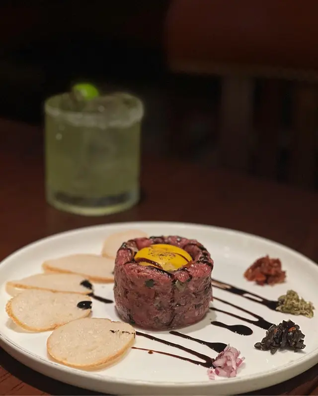 配有蛋黃🥚 洋蔥碎🧅 酸瓜🥒 胡椒🧂伍斯特醬