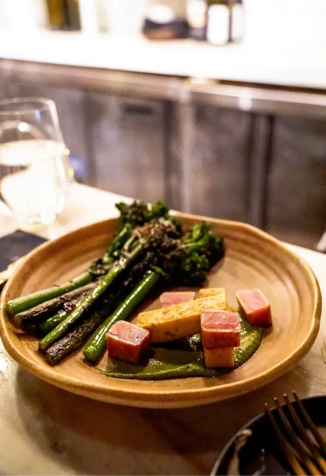 似搽咗麵豉嘅broccolini再拎去烤 鹹度啱啱好