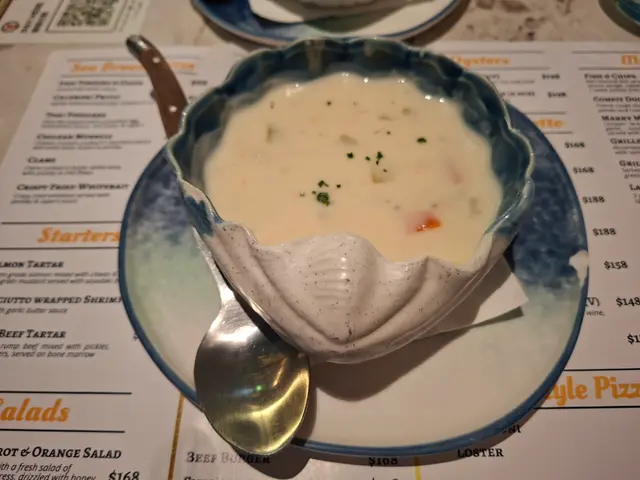 ✨️餐湯有兩款,一款是龍蝦湯,另一款是海鮮巧達濃湯。個人覺得兩款都好飲,一款好香濃龍蝦味,另一款好像在飲周打海鮮湯的感覺,有魷魚肉吃。