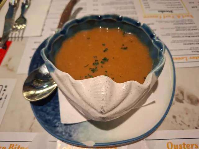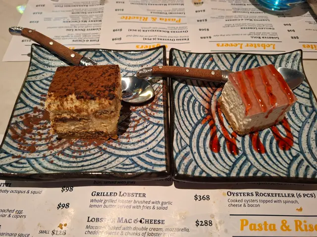 ✨️今天我和女朋友兩位來吃,點選了兩份Set dinner, 一份就是「Grilled Whole Lobster 450-500g),另一份就是「Lobster Mac & Cheese」。每份Set dinner 都包括餐湯,前菜是生蠔配魚餅,蛋糕甜品