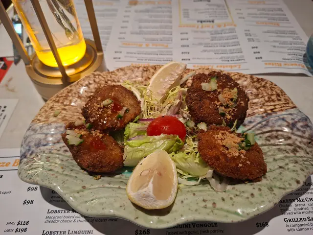 ✨️前菜方面,我們不太愛吃生蠔,服務員把前菜轉成4粒泰式魚餅,咬落去卜卜脆,彈牙好食🤭