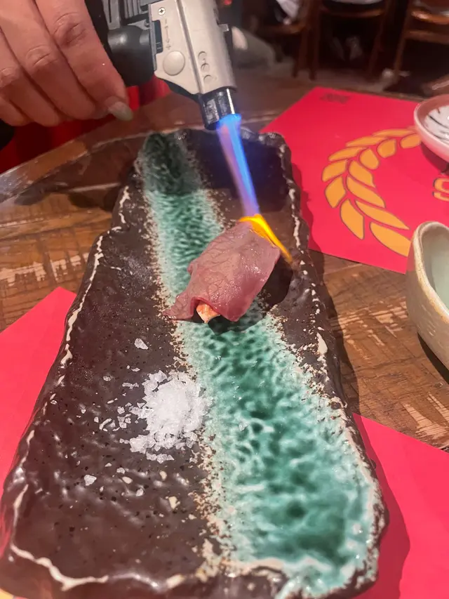 侍應即席喺面前用火槍燒,內裏嘅鵝肝就會溶化到好creamy,配搭埋和牛同埋好似脆餅嘅法包,油香四溢