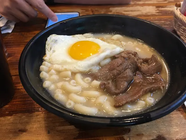 我點了個金牌早餐, 起初見到佢個餐牌時以為有好多, 咪淨係得一碗粉..... 不過味道唔錯, 牛肉肉質算係咁, 有咬勁, 有本地鮮牛FEEL, 隻蛋煎得唔錯, 個湯底都幾香濃沙爹味~