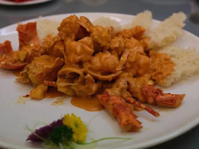 主角竟然係炸得香脆嘅新竹米粉!配上椰香濃郁嘅泰式紅咖哩汁,太好食啦~我哋竟然食晒米粉先記得食龍蝦🤣