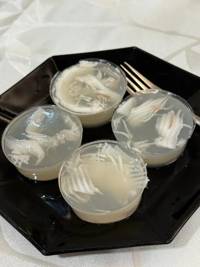 個甜品就咁睇以為普通大菜糕,點知食落係好清新嘅椰皇汁味道🥥,仲見到有幾塊椰皇嘅肉喺入面,果然真係米芝蓮酒家,連甜品都一絲不苟、真材實料👌🍮
