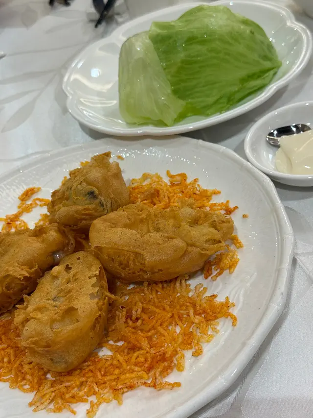 桶蠔炸得表面脆卜卜,蠔肉肥美,天婦羅薄薄地,搭配沙律醬和新鮮生菜捲在一起,清新不油膩🥬😊。生菜更吸收了蠔汁的精華,好Juicy💦,整體口感層次豐富🎊