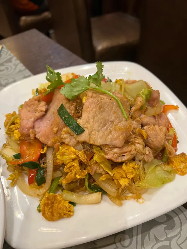 好有驚喜!因為第一次食泰式炒粉絲,粉絲炒得乾身,味道濃郁,有鑊氣!搭配最大大片嘅豬肉片食,好滿足。我個人好鍾意食🥰