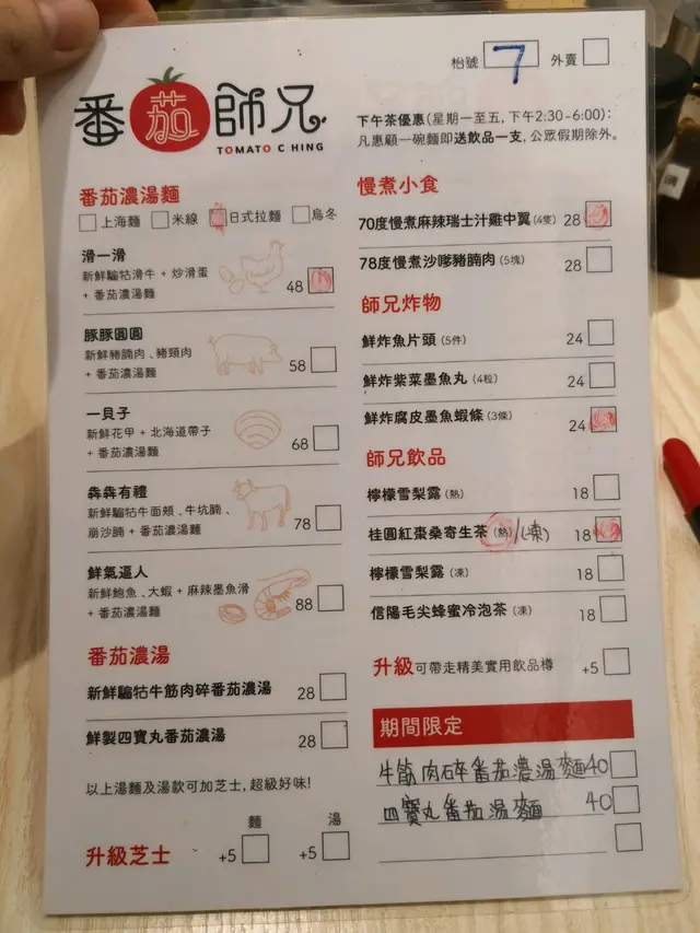 用marker在餐牌上畫好想點的食物再交給店員就可以了。一個人吃一碗麵和兩款小食,不是很多而已吧~