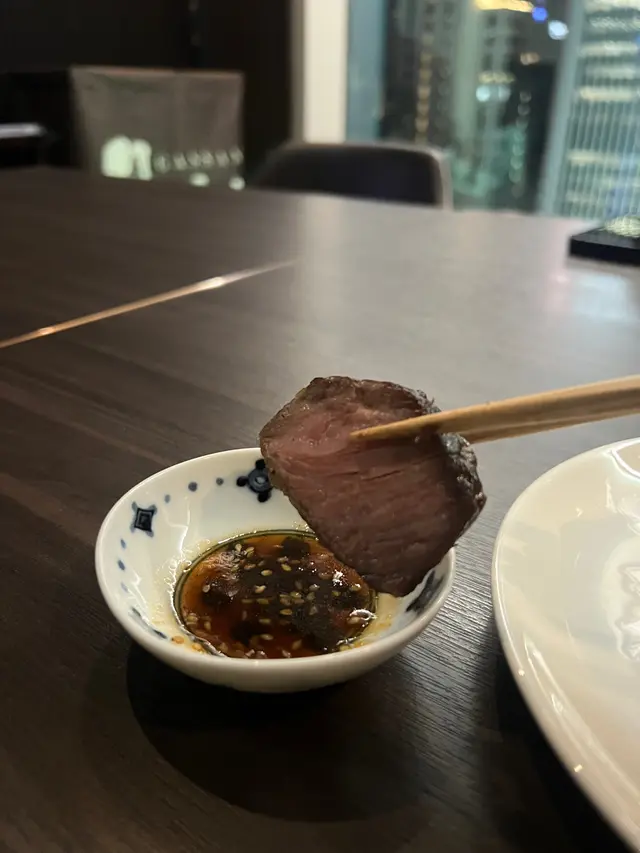 澳洲和牛骨付肋肉 - 以酒燒方式,油脂分布平均,厚切有油香但不是入口即溶,喜歡牛肉有咬口的朋友可以一試。