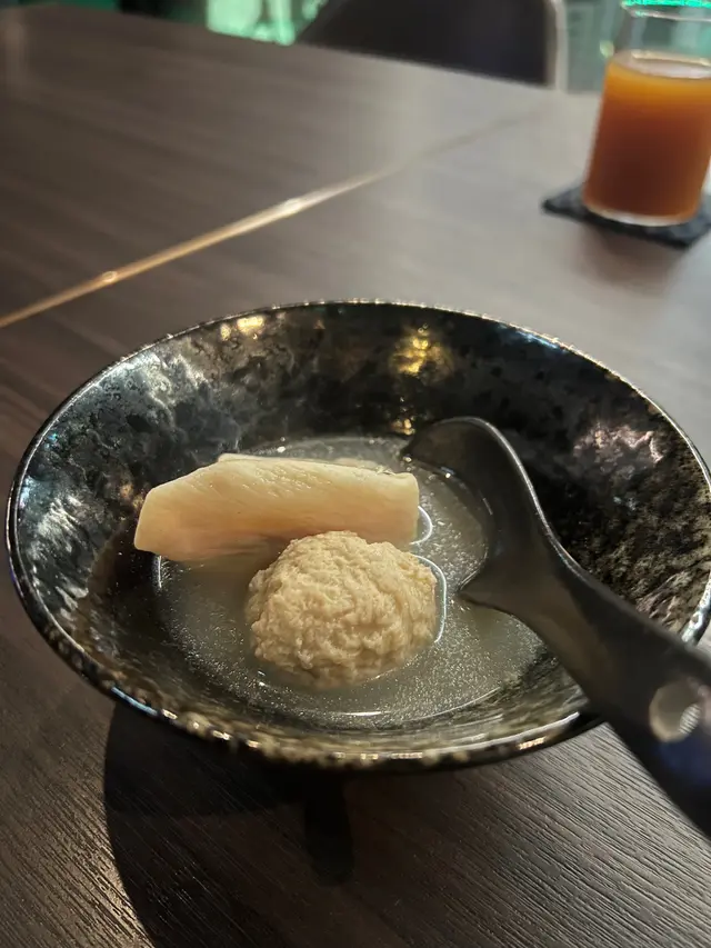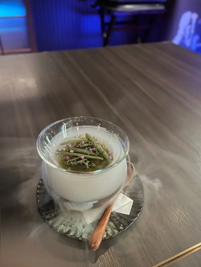 蘇格蘭蟶子 - 鰹魚湯輕燙蟶子,帶出蟶子鮮味!配上馬糞海膽加魚子醬及山椒醬,雜合鮮、鮮、脆於一身!