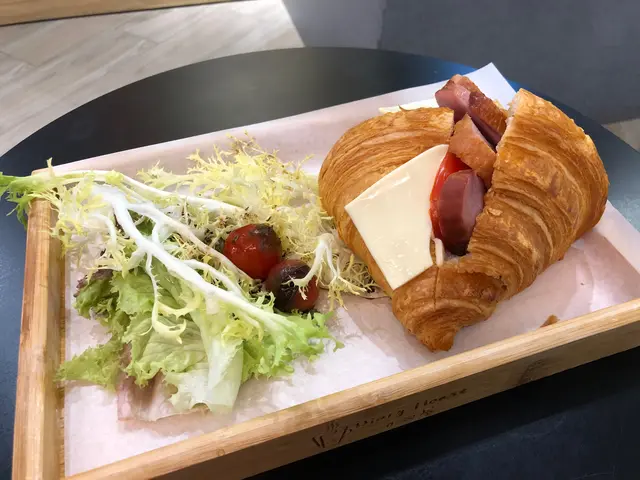至於食物方面,老闆推薦左佢地嘅熱賣款 - 韓式泡菜牛角包,亞洲與歐洲嘅混合味道,聽落都幾得意,食落更加有驚喜!微酸及微辣嘅泡菜豬肉,加上牛角包本身自帶嘅微甜,令味道相當豐富,不知不覺間一個人已經食晒成個包😋