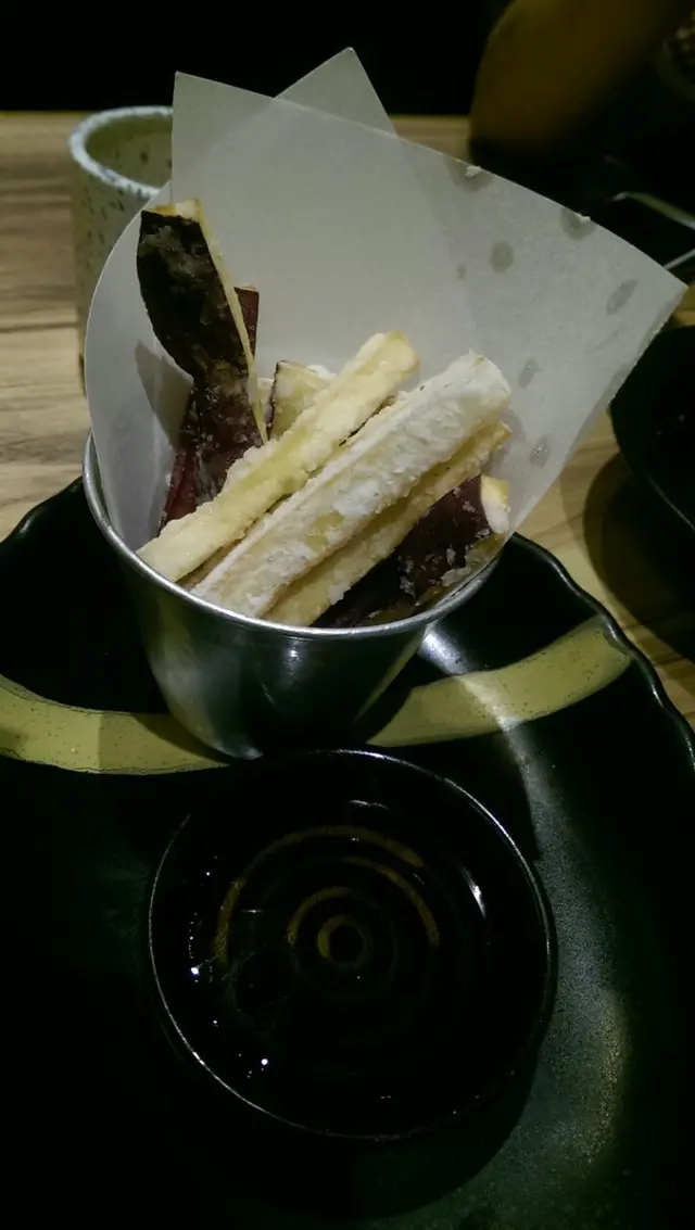 親民一點的拉麵店 AmandakwongLevel 32015-08-25650 views Follow 觀塘搵食咁耐都未試過呢間,原因很簡單。想食拉麵的,就想食一蘭、豚王之流,百幾蚊碗麵要食出名有質素的。想平食就不需要係APM入面搵,到街外找麵店多的是。今次跟家人剛好經過又唔想等位,就選擇左呢間。 點左三碗麵,白、赤同黑。麵的質素正常,所以價格係五十~六十幾係合理的。反而小食有驚喜。我很喜歡食紫薯的食物,呢款紫薯栗子餅就啱晒。雖然栗子唔夠重,但食得到一粒粒的栗子感覺真材實料。另外亦點左紫薯條。以為應該以炸薯條(雖然都似),但更似潮式的反沙竽頭。份量看著比較小,但吃下去很有飽足的感覺。至於燒芝士年糕就很一般,成碟只有一件,就只係年糕上放上芝士再加埋塊紫菜而已。由於對小食感到滿意,就後加一碟炸白飯魚。不過感覺跟炸九肚魚差不多,不算驚喜。始終都喜愛紫薯的小食!YEAH! The above review is the personal opinion of a user which does not represent OpenRice's point of view.2Share親民一點的拉麵店 麺屋武蔵 https://s.openrice.com/QrKT0vEib00Report Post Ratings4Taste3Decor3Service3Hygiene3ValueDate of Visit2015-08-09Waiting Time20 Minutes (Dine In)Spending Per Head$150 (Dinner)