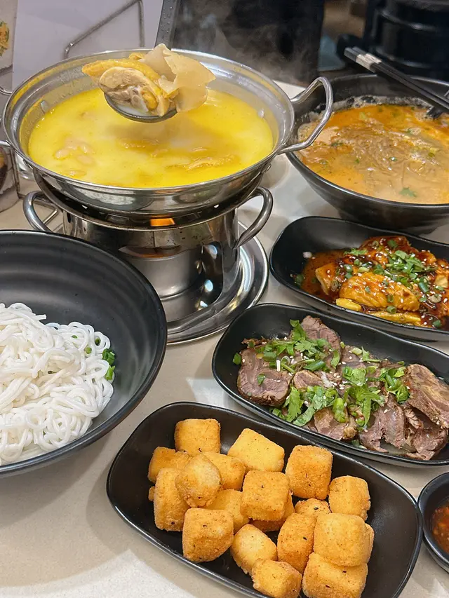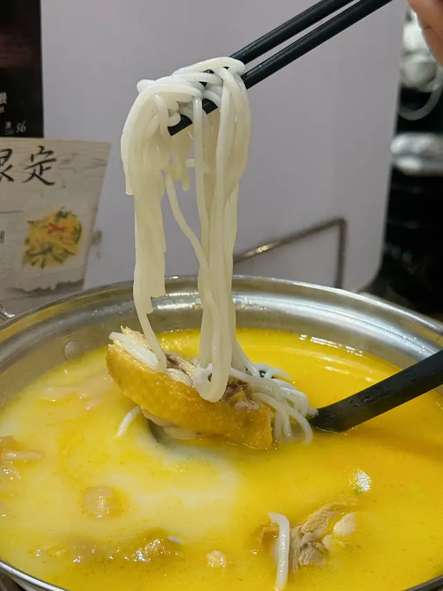 一整鍋花膠雞濃湯連爐上熱辣辣 湯底富含膠質非常鮮甜滋補🤤雞件夠大件好嫩滑 有3至4大件花膠好足料口感彈牙👍🏻米線一大碗份量好多🍜貼心地跟湯分開上保持米線口感 以免煮得太耐爛晒