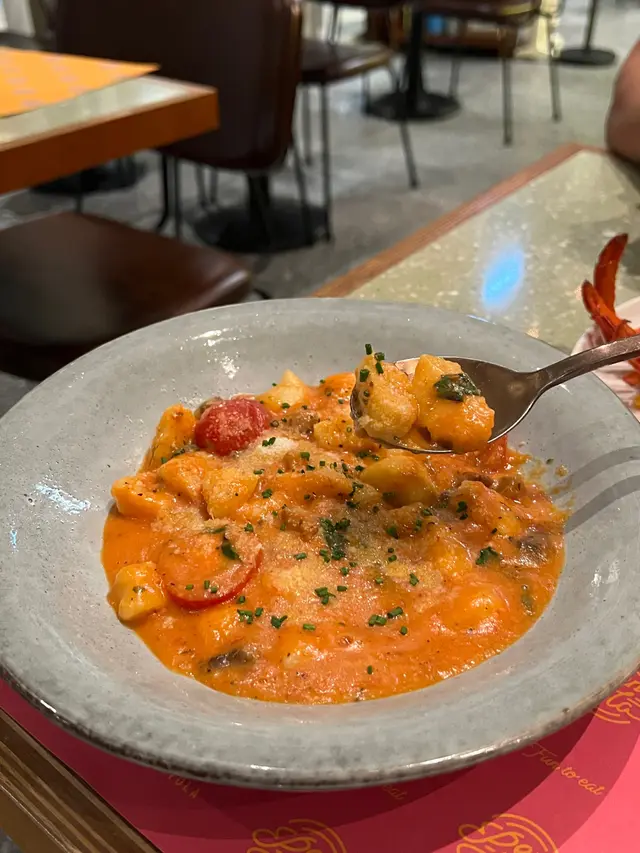 主腳登場🤤♥️就係波士頓🦞意粉🍝🤣🤣先講下個意粉先😍真係岀色🤤口感有咬口加上係手工關係好掛汁🍀🍀意粉既汁👶🏻👼🏻食到LAM LAM莉😆😆🦞肉質煮得吾錯而且容易起殼🍀